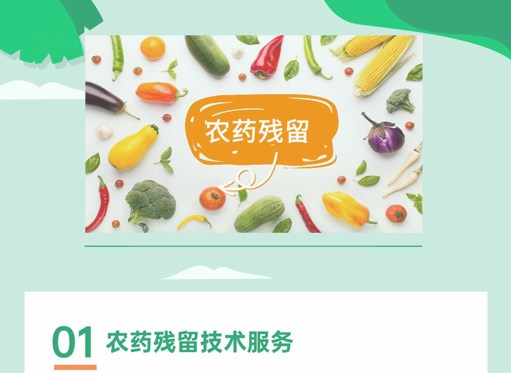 | 农残快检 | 可开展多种快检方法应用,多联条胶体金技术(一种多合一的试纸条现场快速检测形式)现场快速筛查50种农残 |